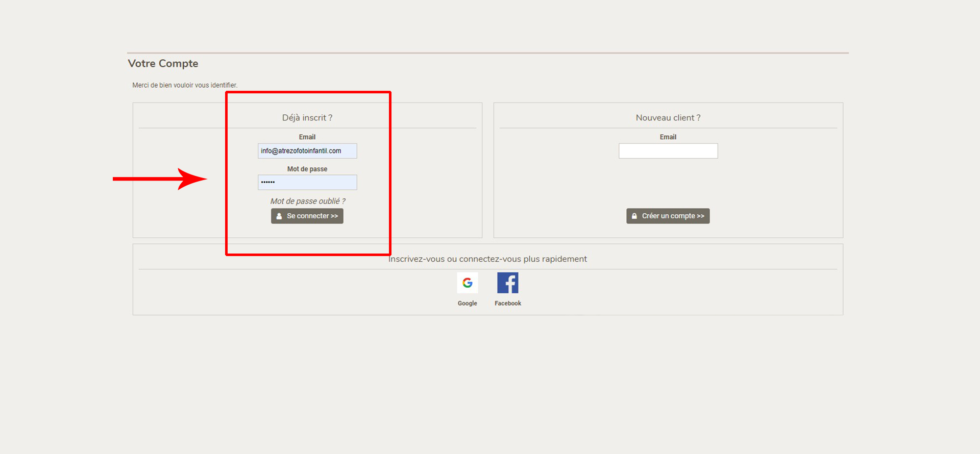Une fois à l'intérieur, entrez simplement l'adresse e-mail avec laquelle vous êtes inscrit et votre mot de passe, puis cliquez sur « Se connecter ». ![]() | |||